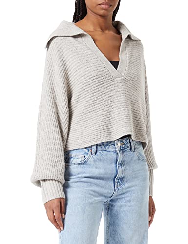 TOM TAILOR Denim Damer Stickad tröja med krage 1033052, 30224 - Cloud Grey Melange, L