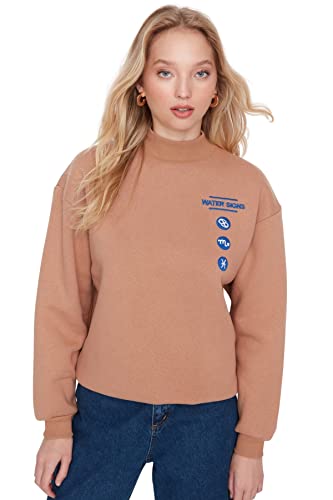 Trendyol Dam anpassad basic stickad tröja med stående krage, Brun, S