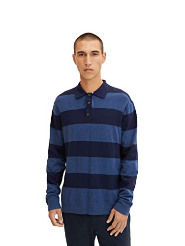 TOM TAILOR Herr Stickad tröja med krage och ränder 1032281, 30245 - Blue Navy Block Stripe, S