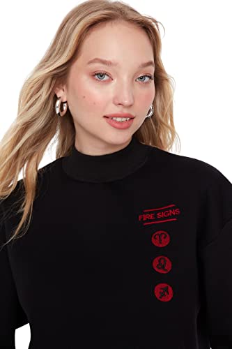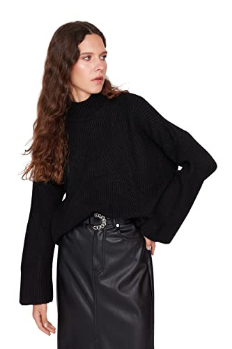 Trendyol Dam vanlig basic stickad tröja med stående krage, Svart, S