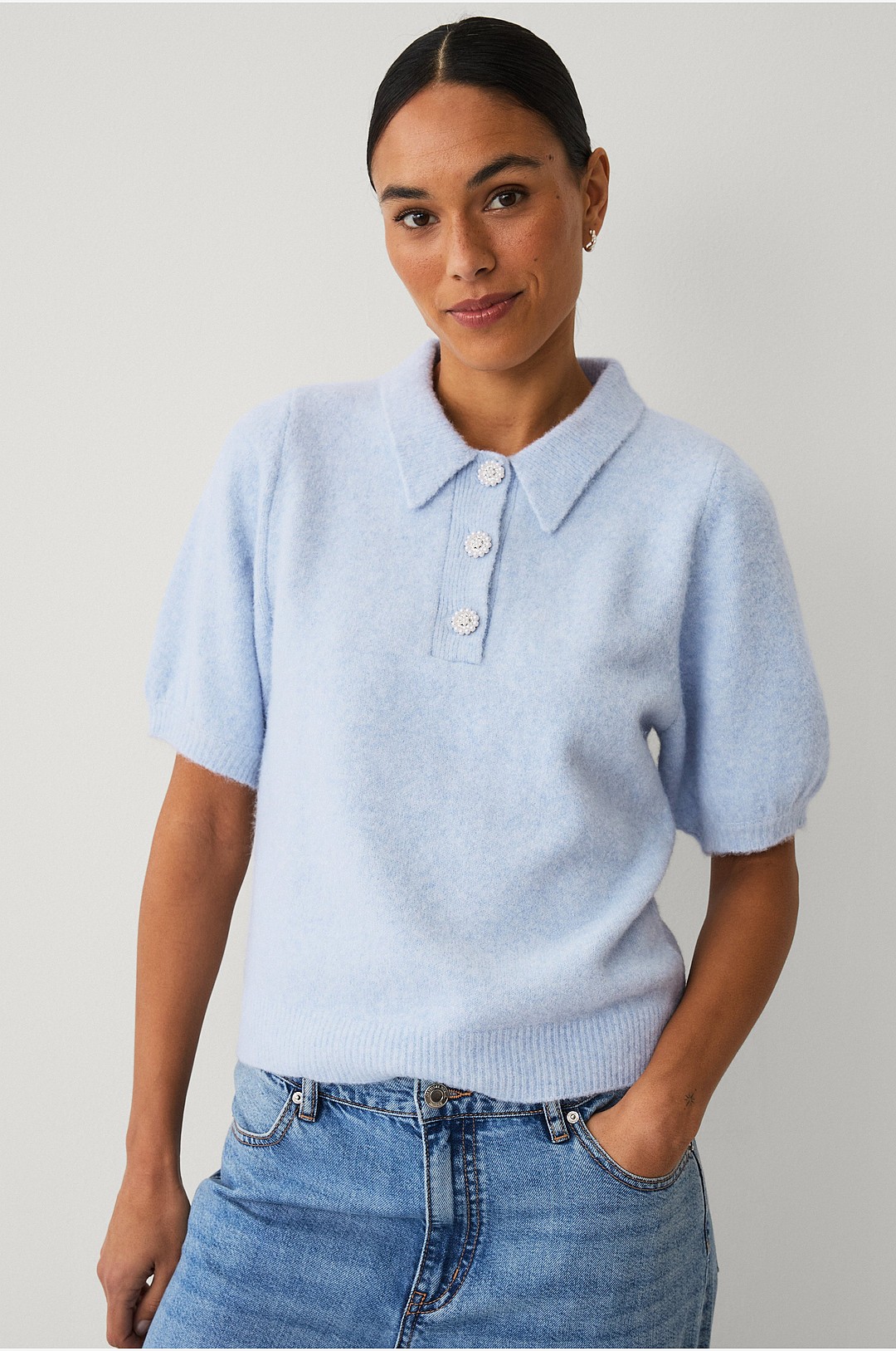 Ellos Collection - Stickad tröja med krage - Blå
