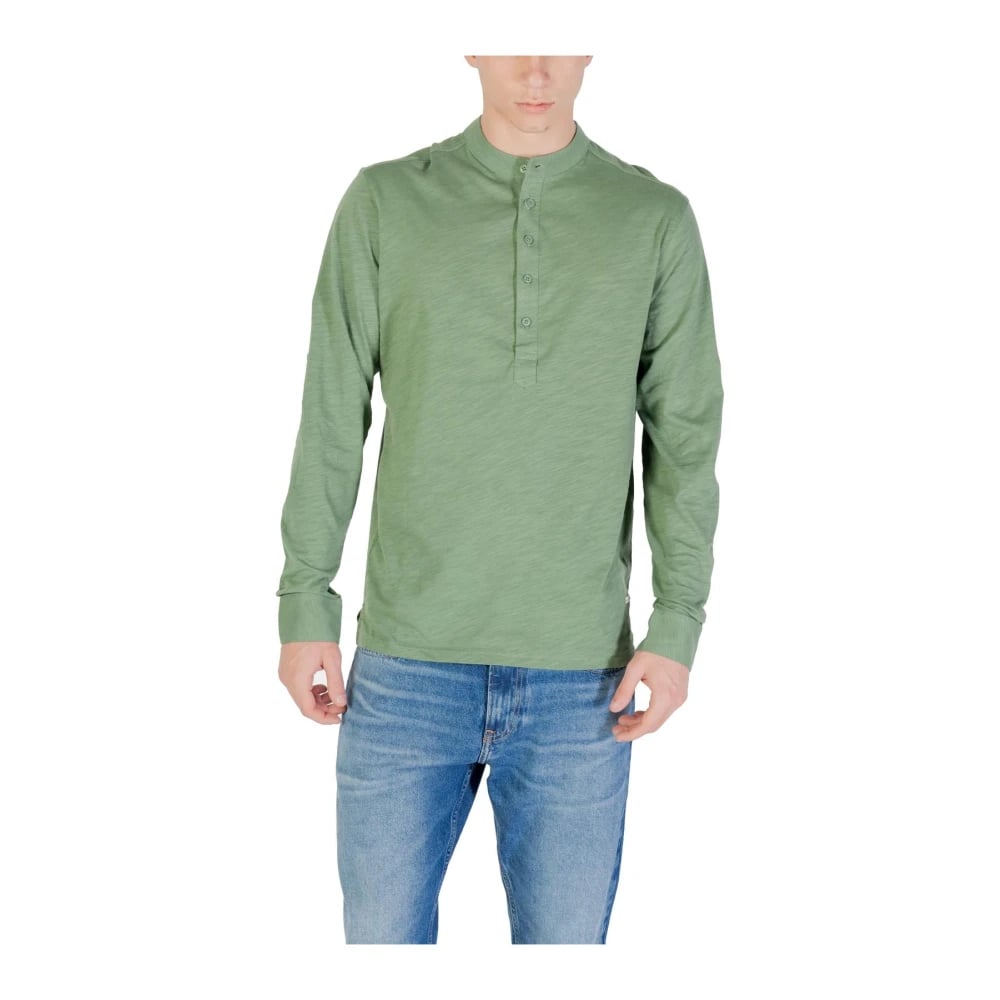 Gianni Lupo, Toppar , Herr, M, Bomull, Grön stickad tröja med mandarin krage