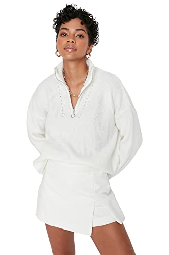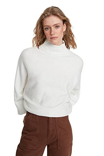 Trendyol Dam vanlig basic stickad tröja med stående krage, Ecru, S