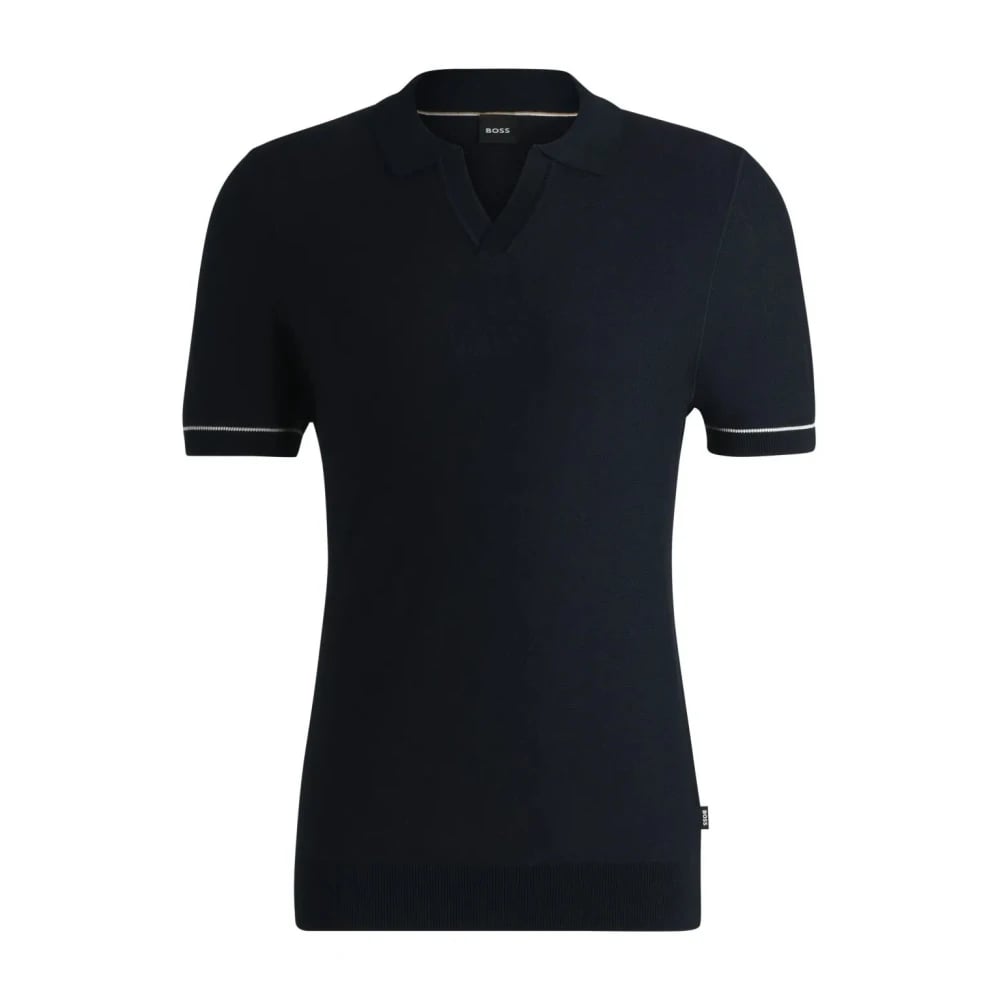 Hugo, Toppar , Herr, M, Bomull, Stickad tröja i bomullsblandning med Johnny-krage