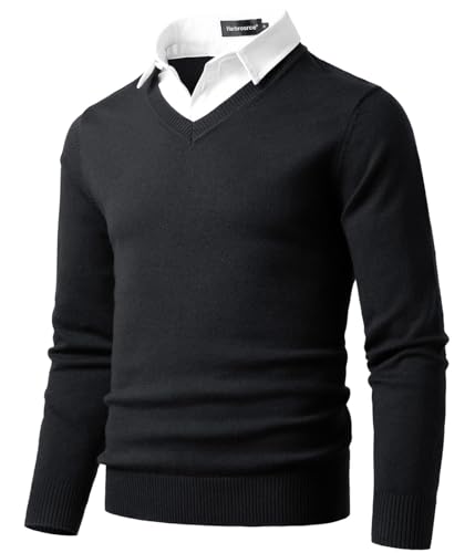 Harbrosrce Herr Mock V-krage tröja hoppa långa ärmar stickad pullover vardaglig business basic stickad tröja, A-svartvit krage, L