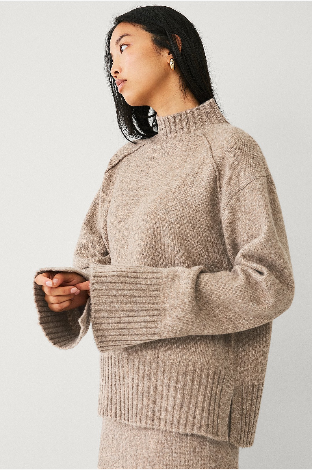 Ellos Collection - Stickad tröja med hög krage - Beige