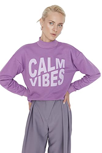 Trendyol Dam normal basic stickad tröja med stående krage, Lila, L