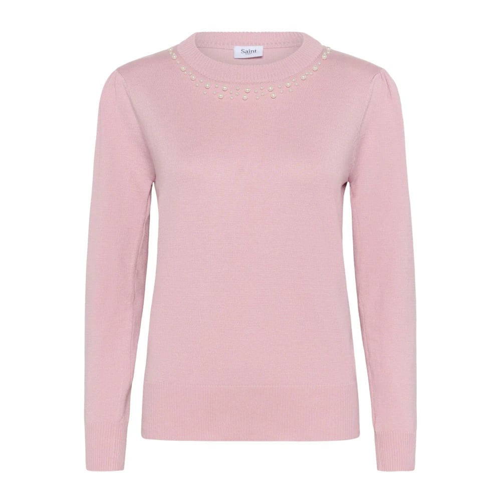 Saint Tropez, Stickade Tröjor , Dam, M, Pink Nectar Pullover med Vackra Pärlor