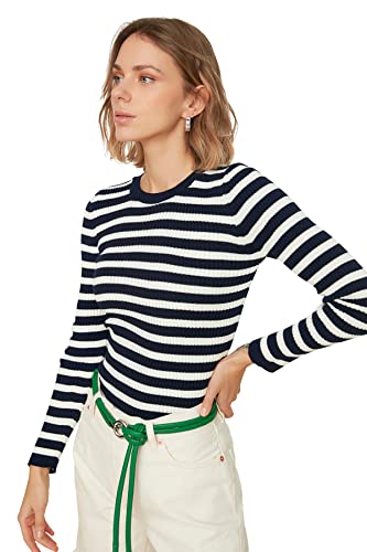 Trendyol Kvinnors marinblå randig stickad tröja tröja, XS