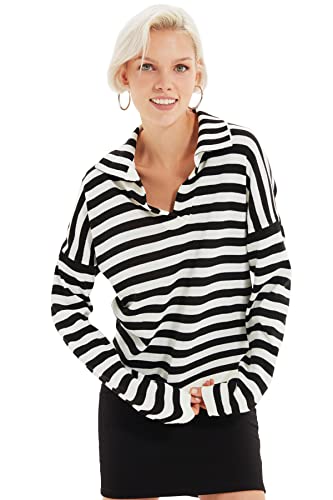 Trendyol Dam, ecru, pikétröja, randig, stickad tröja, S