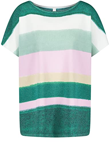 Gerry Weber Damtröja, 1/2-ärm, tröja med blockringar, halv arm, överklippta axlar, stickad, skjorta, topp, body kortärmad tröja, Grön/lila/rosa randig, 40 SE