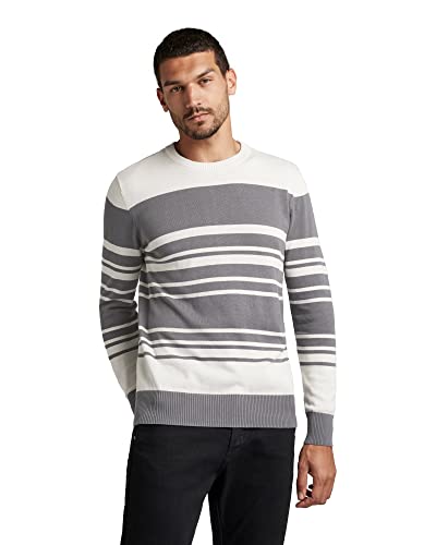 G-STAR RAW, Randig stickad tröja för män, Mehrfarbig (Nimbus Cloud/Granite Stripe C706-c992), M