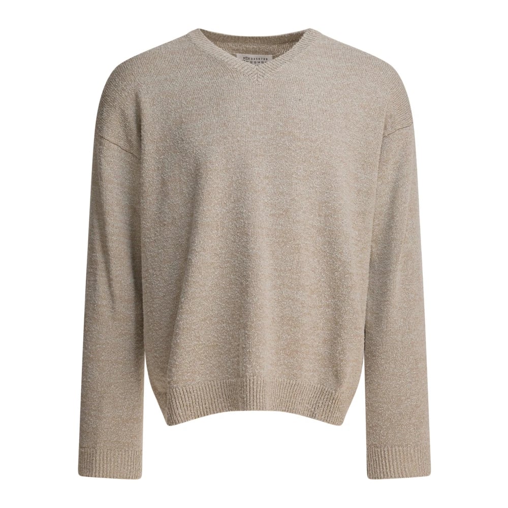 Maison Margiela, Stickade Tröjor , Herr, M, Bomull, Grå Stickad V-ringad Tröja Aw25