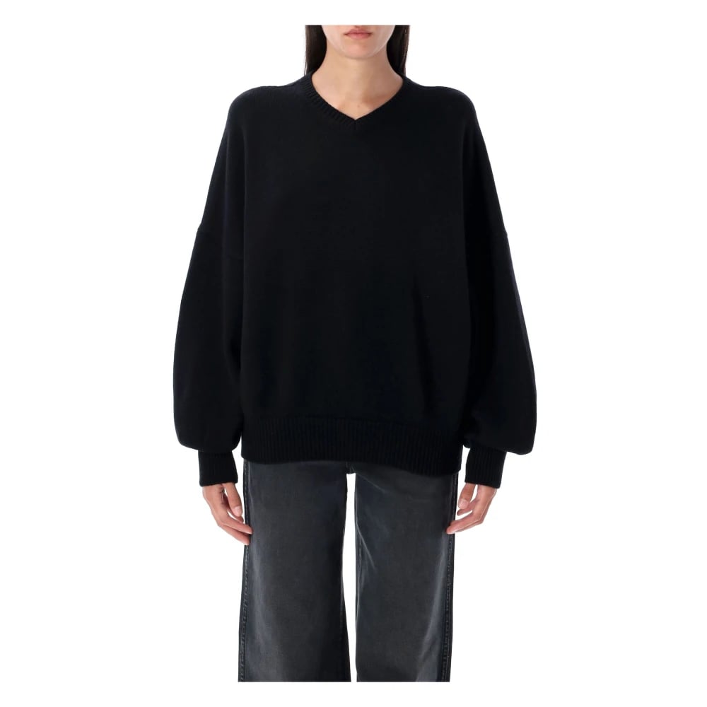 Khaite, Stickade Tröjor , Dam, M, Kashmir, Svart Stickad V-ringad Tröja Aw25