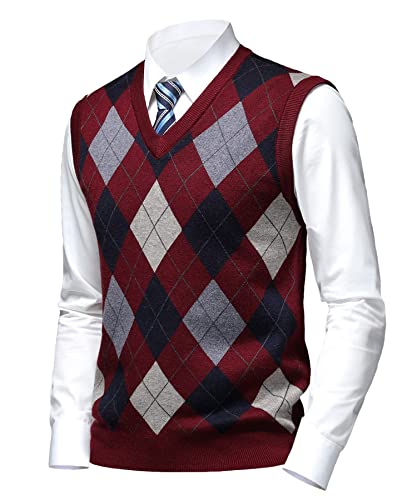 Herothorn Tröjväst för herr, tjock, med romb-/Argyle-mönster, stickad och ärmlös cardigan med V-ringning, pullover-väst med knappar, M