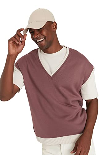 Trendyol herr herr herr normal v-ringad stickad tröja väst, Dammig ros, L