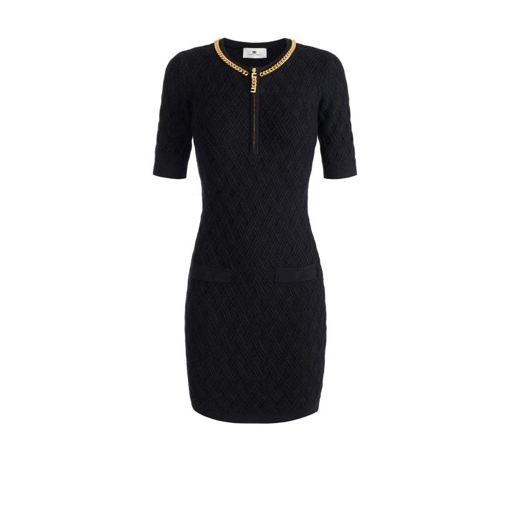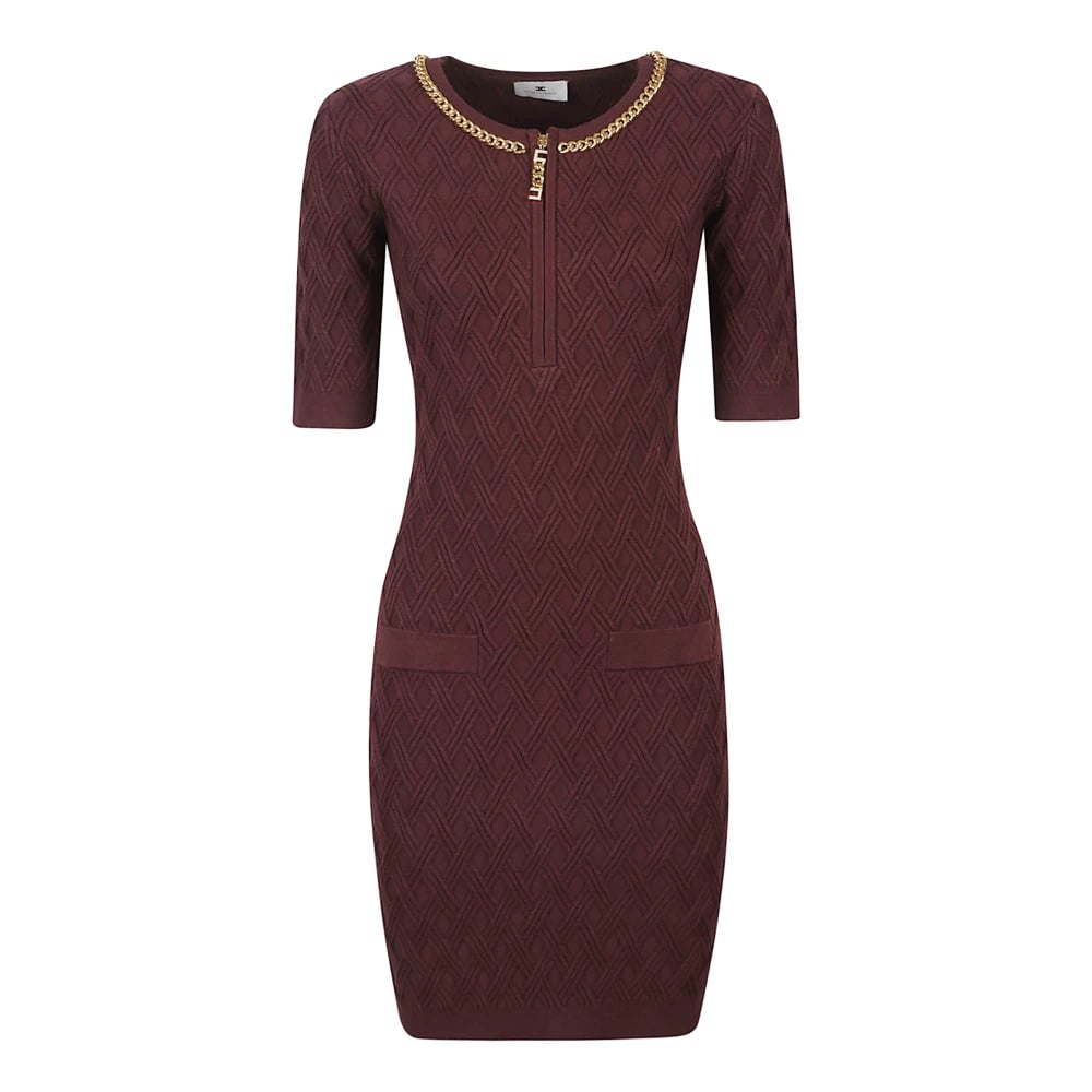 Elisabetta Franchi, Klänningar , Dam, L, Polyester, Miniklänning i stickat tyg med diamanter och juveldetaljer