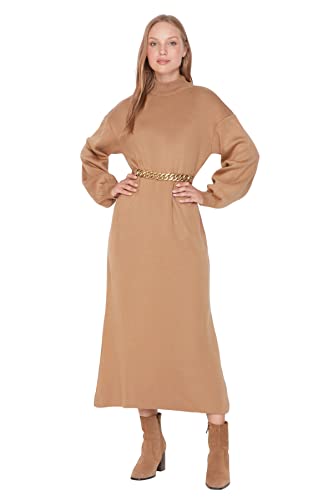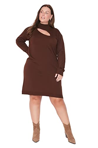 Trendyol Dam Kvinna Normal Shift Stående Krage Stickat Plus Size Klänning, Brun, XXL