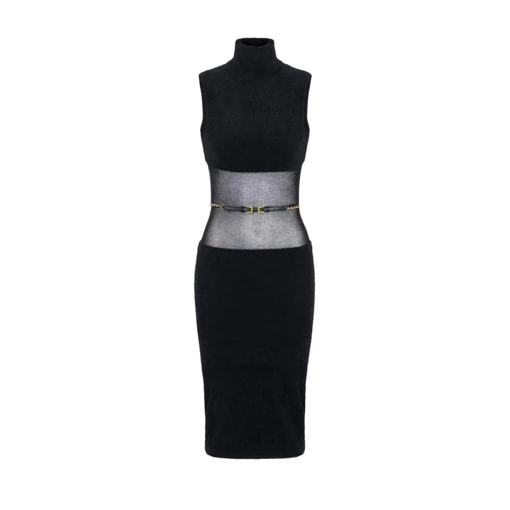 Elisabetta Franchi, Klänningar , Dam, M, Bomull, Miniklänning i stickat tyg med genomskinliga detaljer