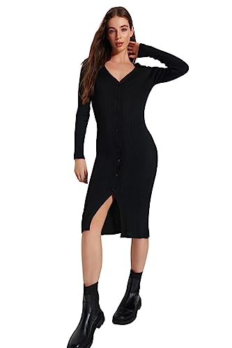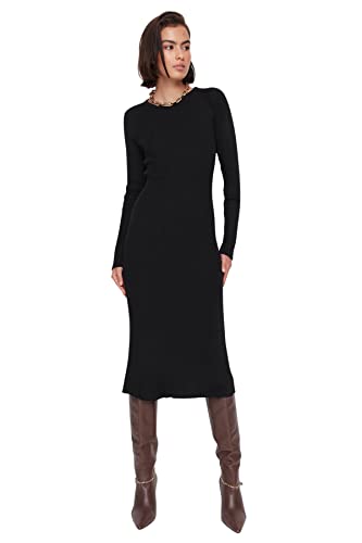 Trendyol Dam Midi Bodycon Slim Stickat Klänning, Svart, L