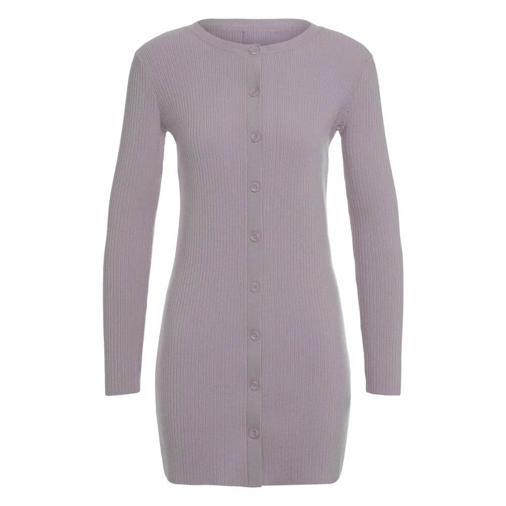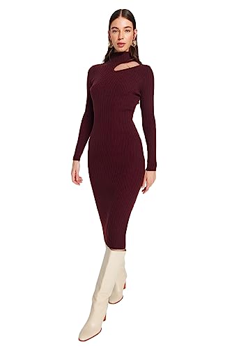 Trendyol FeMan Bodycon Slim Fit Stickat Klänning, Plommon, S, Plommon, S