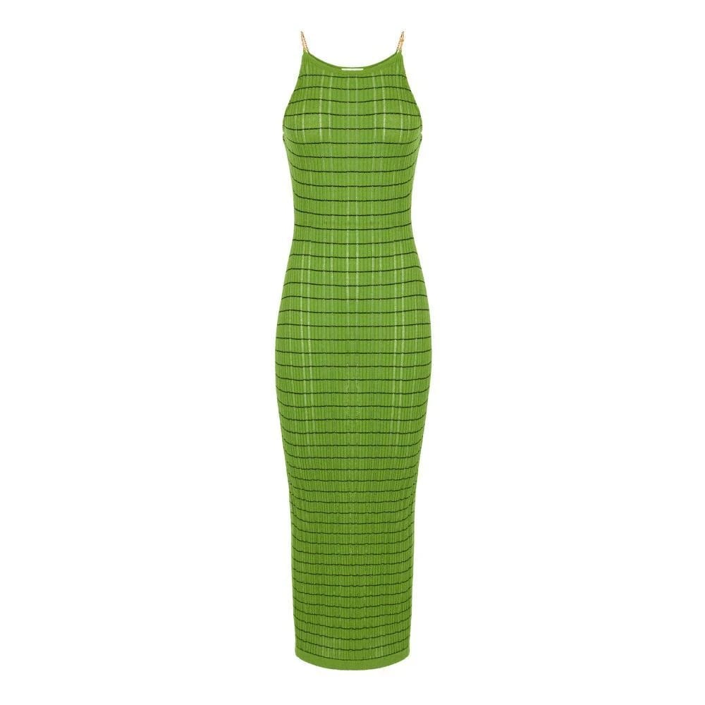 Elisabetta Franchi, Klänningar , Dam, 2Xl, Bomull, Randig klänning i stickat tyg med kedjor