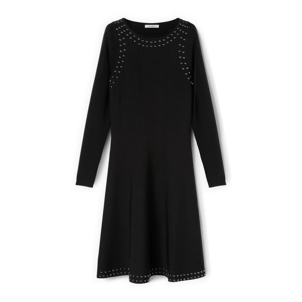 Motivi, Klänningar , Dam, XS, Nylon, Utsvängd midiklänning i stickat med applikationer