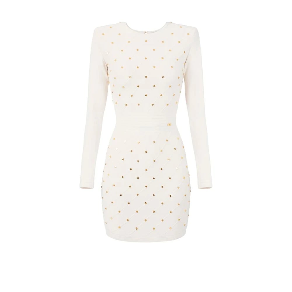 Elisabetta Franchi, Klänningar , Dam, M, Polyester, Miniklänning i stickat tyg med diamanter och juveldetaljer