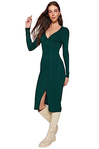 Trendyol FeMan Shift Slim Fit Stickat Klänning, Smaragd, S, Smaragd, S