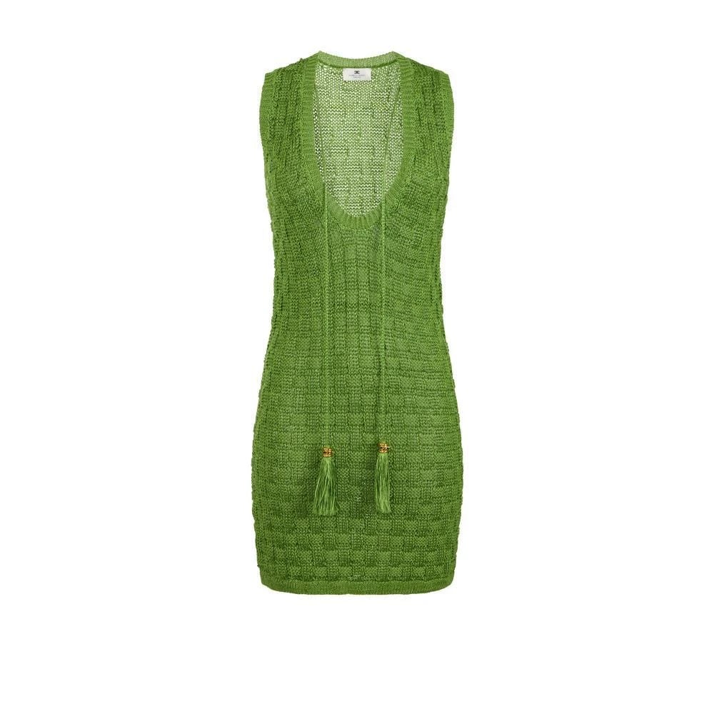 Elisabetta Franchi, Klänningar , Dam, XS, Linne, Miniklänning i stickat tyg med tofsar