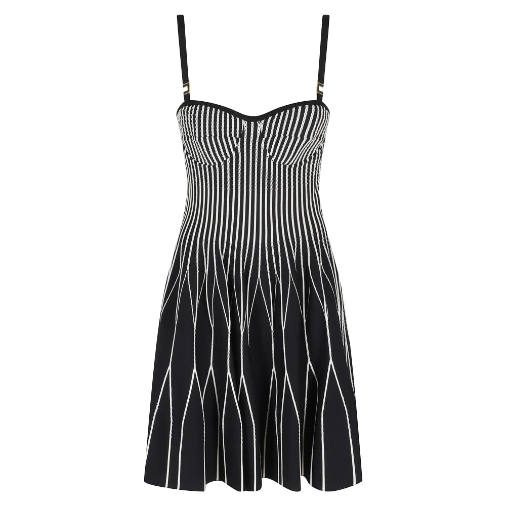 Elisabetta Franchi, Klänningar , Dam, XS, Bomull, Randig klänning i stickat tyg med kedjor