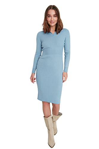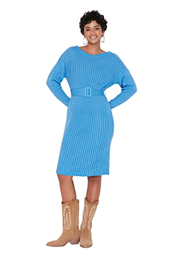 Trendyol Dam Midi Bodycon Slim Fit Stickat Klänning, Blå, L