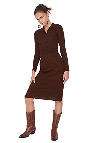 Trendyol FeMan Midi Bodycon Slim Fit Stickat Klänning, Brun, XL, Brun, XL