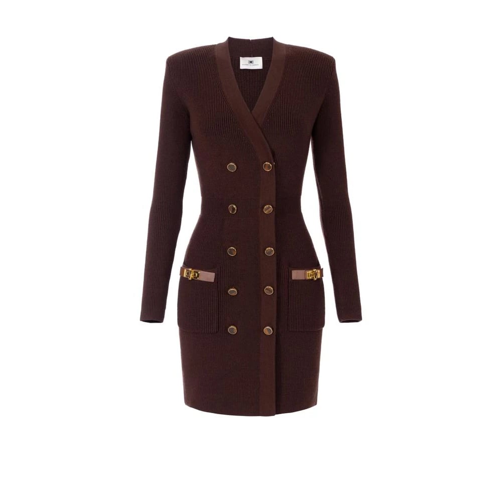 Elisabetta Franchi, Klänningar , Dam, M, Miniklänning i stickat tyg med glänsande viskosband
