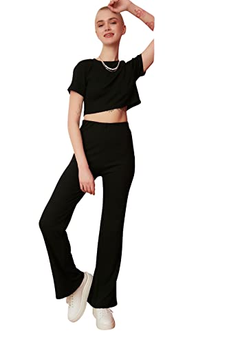 Trendyol Dam vanligt stickat tvådelat set, svart, 34, Svart, 60 SE