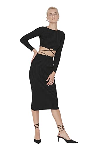 Trendyol kvinnor enkel mitt stickat tröja-kjol tvådelat set, Svart, XL