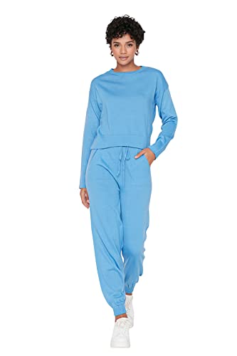 Trendyol Dam dam vanligt stickat tvådelat set koordinerad outfit, blå, M (förpackning med 2), BLÅ, M