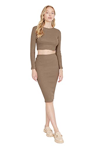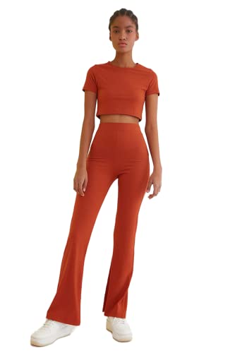 Trendyol Vanligt stickat tvådelat set för kvinnor, Kanel, L
