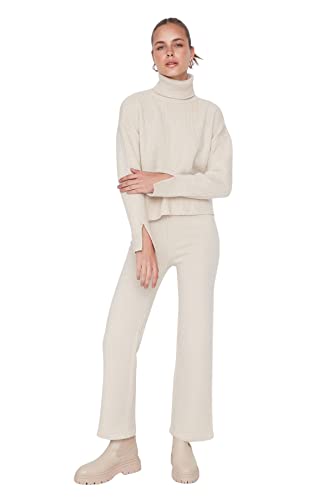 Trendyol Dam dam vanligt stickat tvådelat set koordinerad outfit, beige, L (förpackning med 2), BEIgE, L