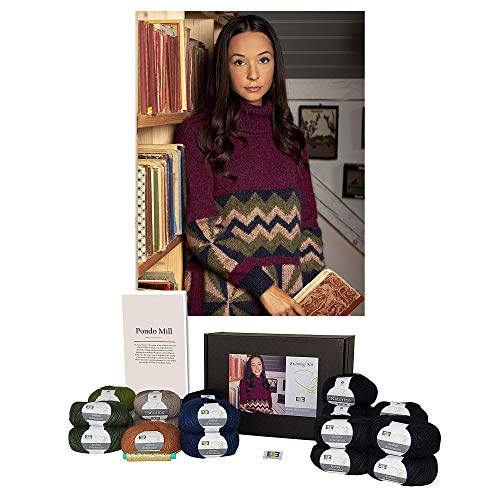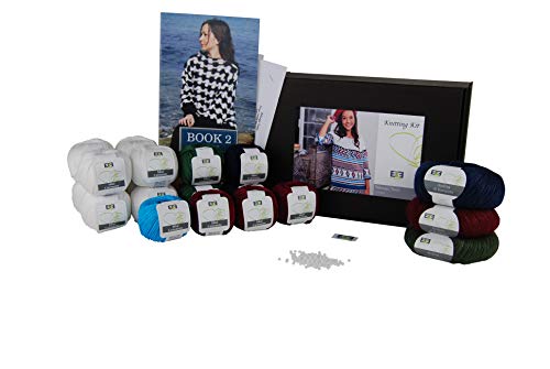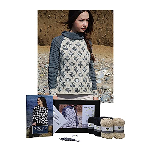 DesignEtte Stickat set "lantligt landskap", garn av 50% siden och 50% ull, siden, indigo, M