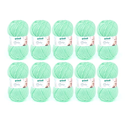 Gründl Baby uni stickgarn/virkgarn (OEKO-TEX certifierad babyull, slitstark och lättskött, 70% polyakryl 30% polyamid, 50 g/150 m, nåltjocklek: 3,5 – 4,5, 10 x 50 g), mynta