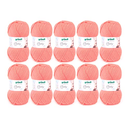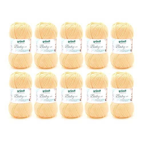 Gründl Baby uni stickgarn/virkgarn (OEKO-TEX certifierad babyull, slitstark och lättskött, 70% polyakryl 30% polyamid, 50 g/150 m, nåltjocklek: 3,5 – 4,5, 10 x 50 g), aprikos
