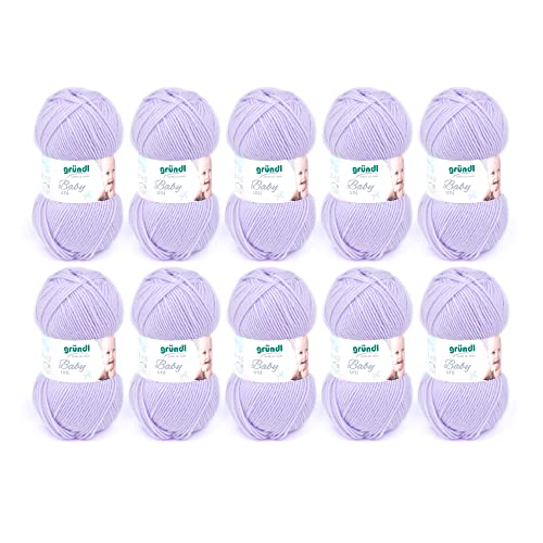 Gründl Baby uni stickgarn/virkgarn (OEKO-TEX certifierad babyull, slitstark och lättskött, 70% polyakryl 30% polyamid, 50 g/150 m, nåltjocklek: 3,5 – 4,5, 10 x 50 g), syren