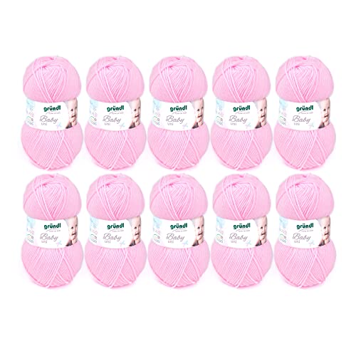 Gründl Baby uni stickgarn/virkgarn (OEKO-TEX certifierad babyull, slitstark och lättskött, 70% polyakryl 30% polyamid, 50 g/150 m, nåltjocklek: 3,5 – 4,5, 10 x 50 g), ros