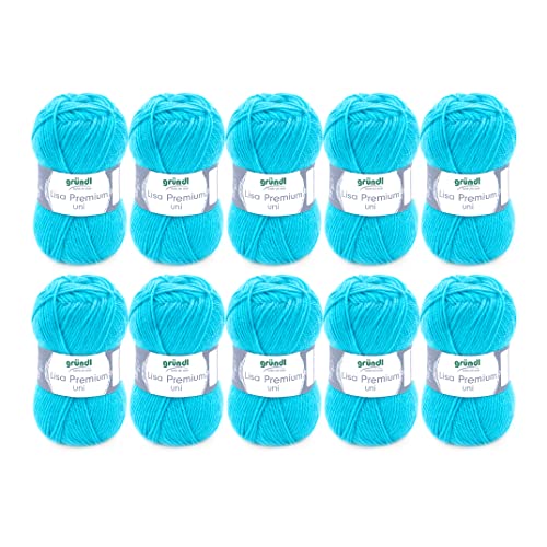 Gründl Lisa Premium Uni stick- och virkgarn (mjuk och ulliknande karaktär, lättvårdat tvättbart stickgarn tillverkat av 100% polyakryl, 50 g/133 m, nåltjocklek: 3,5 – 4,5, 10 nystan à 50 g), turkos