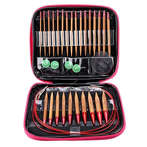 Curtzy Bambu Runda Set med Sticknålar med Förvaringspåse (16 par) - 16 storlekar - 2mm till 12 mm - Nålar med Genomskinliga Plaströr för Garn och Virkningsprojekt