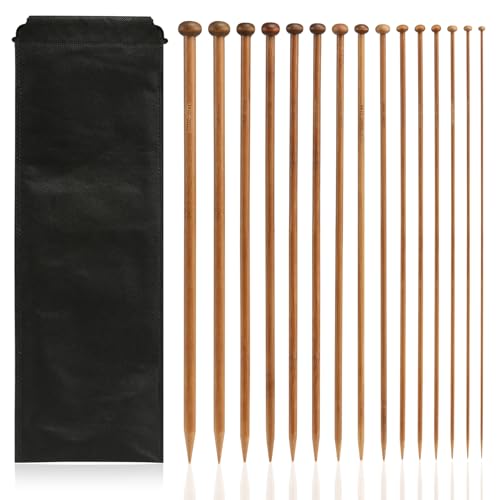 Lihao 15 par sticknålar set bambu stickset med maskstopp stickning stickning nålar för strumpor handskar pullover nybörjare professionell (2 mm – 10 mm/30 cm lång)