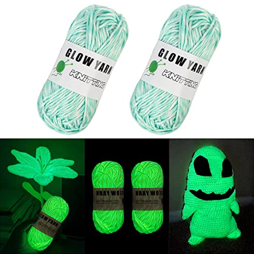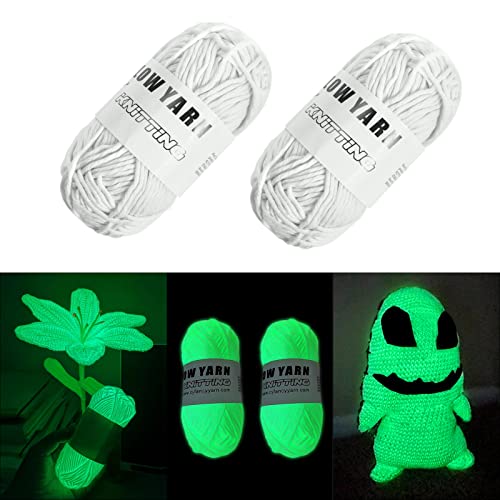 AUAUY 2 rullar glänsande garn i mörkret, 55 m, DIY-konst, hantverk och sömnad, nybörjare, stickning, virkning och festtillbehör till jul, alla hjärtans dag, nyårsgåva, vit