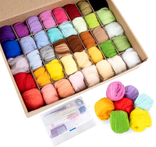 Homewit Nålfiltsset, 40 färger, varje 5 gram filtull för stickning med verktygsset, filtull pyssel nålfilt startkit, ull roving får ull gör-det-själv filtnålar gör-det-själv startsatser för nybörjare