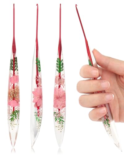 Coopay 4,5 mm virkad krok, glittrande blommönster virkkrokar, ergonomisk hartskrok för artritiska händer, metallvirknål för handgjord stickning, avsmalnande virkkrokar för nybörjare (4,5 mm)